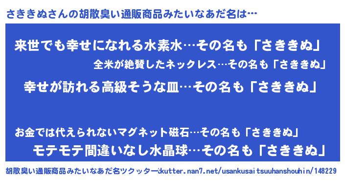 | 男性向けラノベタイトル風あだ名 | 『緋弾のサキキヌ』 |