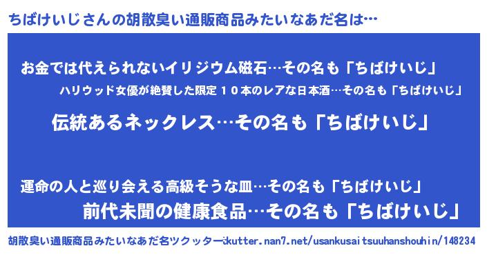 | 男性向けラノベタイトル風あだ名 | 『ちばけいじの嫁は女の子じゃないと思った?』 |