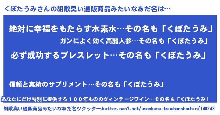 | 意味不明あだ名 | 『ペロリンくぼたうみ』『自称くぼたうみ』 |