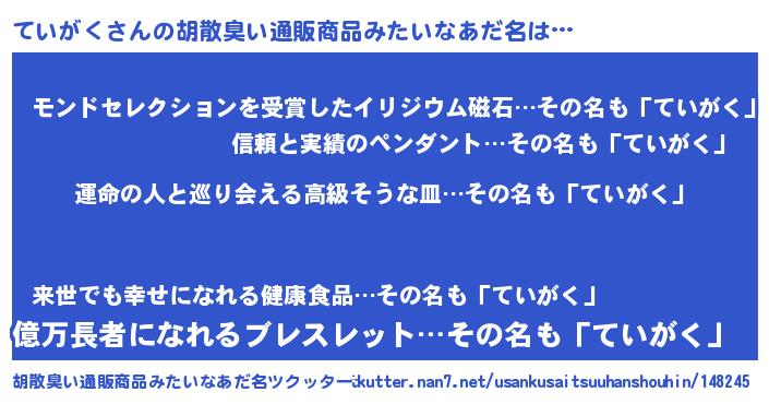| 男性向けラノベタイトル風あだ名 | 『ていがくに滅ぼされるだけの簡単なお仕事です』 |