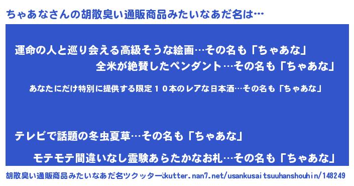 | 意味不明あだ名 | 『住所不定無職ちゃあな(56歳)』 |