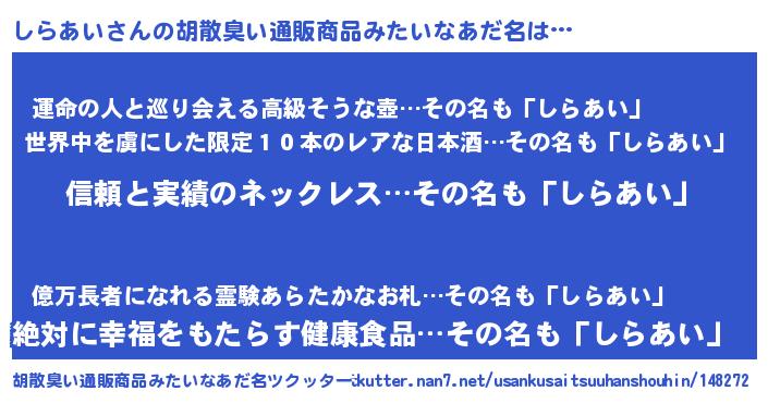 | 男性向けラノベタイトル風あだ名 | 『緋弾のシラアイ』『魔弾の王としらあい』 |