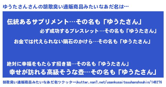 | ヘコむあだ名 | 『ゆうっぺ』『なまこ酢』『ゆうにー』 |