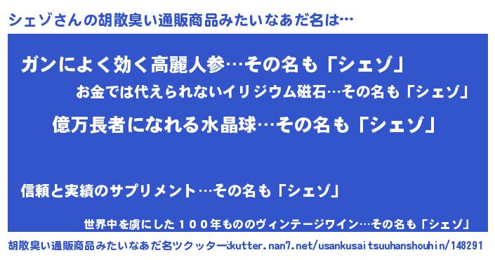 | 意味不明あだ名 | 『ペロリンシェゾ』『自称シェゾ』 |