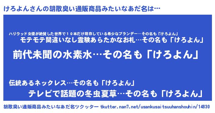 | 意味不明あだ名 | 『永久保存けろよん』『自称けろよん』 |