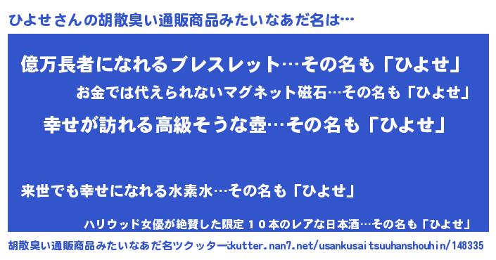 | 意味不明あだ名 | 『ひよせフォーエバー』『ペロリンひよせ』 |