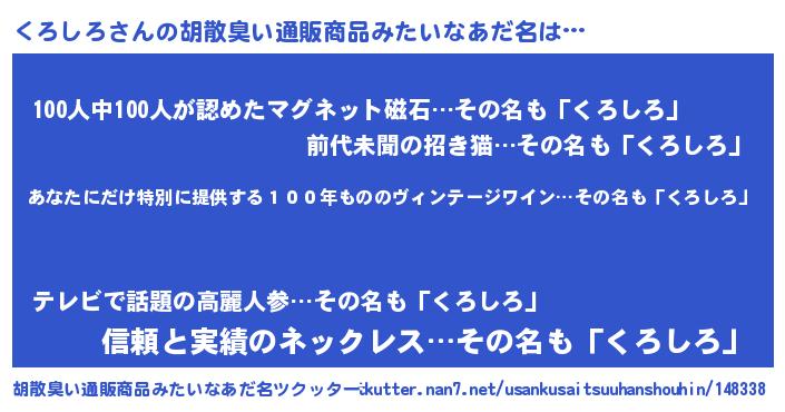 | 意味不明あだ名 | 『住所不定無職くろしろ(12歳)』 |