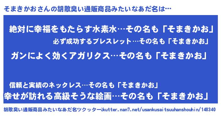 | 意味不明あだ名 | 『自称そまきかお』『永久保存そまきかお』 |