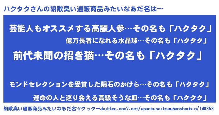 | 恥ずかしいあだ名 | 『ハクちん』『ハクタクデラックス』 |