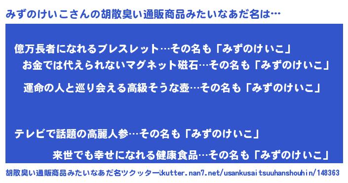 | 意味不明あだ名 | 『みずのけいこフォーエバー』 |