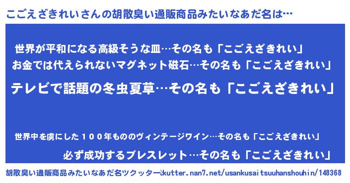 | 恥ずかしいあだ名 | 『コゴエザキレイデラックス』 |