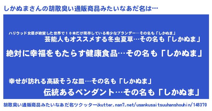 | ヘコむあだ名 | 『しかぬま(爆)』『しかを』 |
