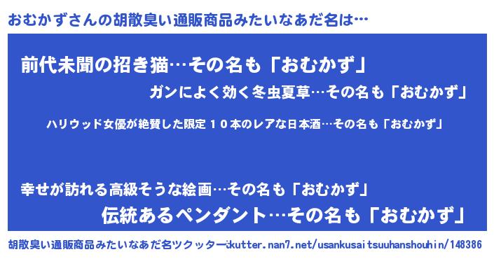| ヘコむあだ名 | 『おむかず(苦笑)』『おむを』 |