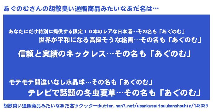 | 意味不明あだ名 | 『とにかく怪しいあぐのむ』 |