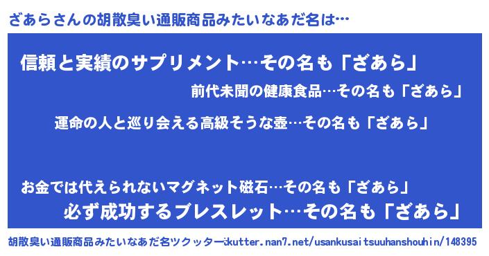 | 意味不明あだ名 | 『ざあらフォーエバー』『ペロリンざあら』 |