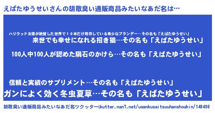 | ヘコむあだ名 | 『えばたゆうせい(遠い目)』『えばぷりん』 |