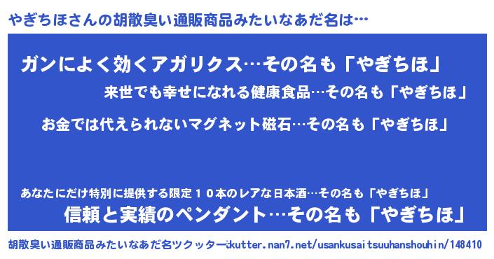 | ヘコむあだ名 | 『やぎお』『やぎちほ(爆)』『牛乳』 |