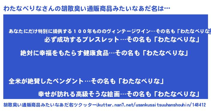 | 意味不明あだ名 | 『永久保存わたなべりな』 |