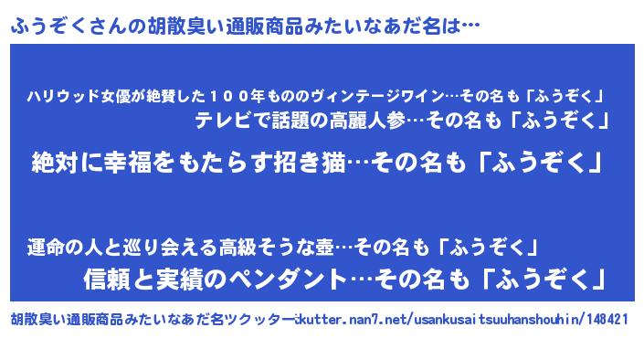 | 意味不明あだ名 | 『永久保存ふうぞく』『自称ふうぞく』 |
