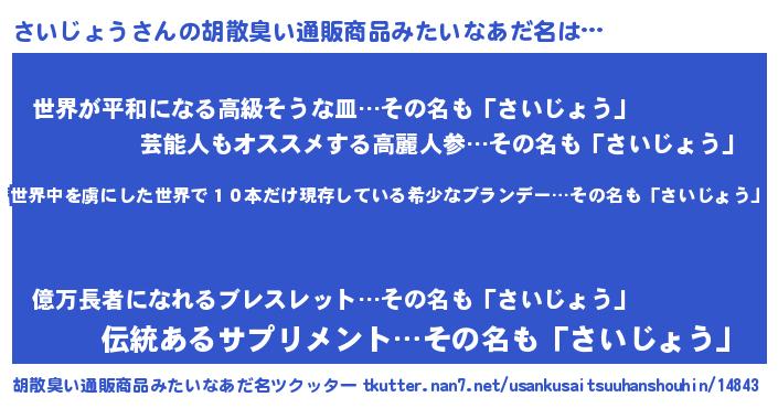 | ヘコむあだ名 | 『豆乳』『さいっちょ』『さいにー』 |