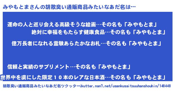 | 恥ずかしいあだ名 | 『プリティーみやもとま』『みやっちょ』 |