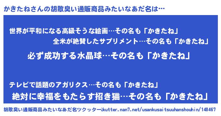 | ヘコむあだ名 | 『かきにゅー』『なまこ酢』『かきを』 |