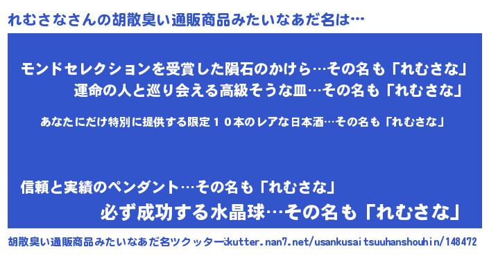 れむさなさんの胡散臭い通販商品みたいなあだ名をツクッター!