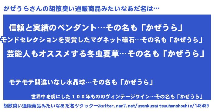 | 肩書あだ名 | 『かぜうら総統』『かぜうらリーダー』 |