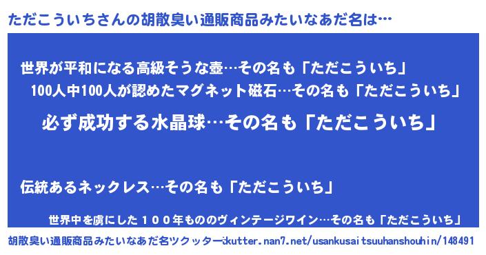 | 意味不明あだ名 | 『ペロリンただこういち』 |