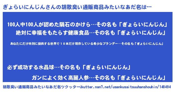 ぎょらいにんじんさんの胡散臭い通販商品みたいなあだ名をツクッター!