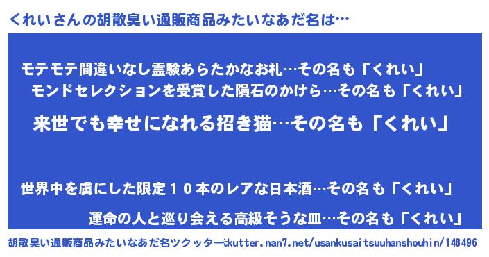 | ヘコむあだ名 | 『くれい(小並感)』『くれっふぃ~』 |