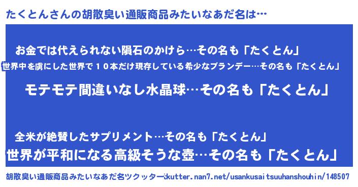 | 欧米人風あだ名 | 『マイケルたくとん』『ダニエルたくとん』 |