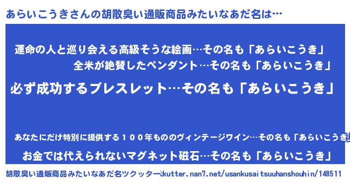 あらいこうきさんの胡散臭い通販商品みたいなあだ名をツクッター!