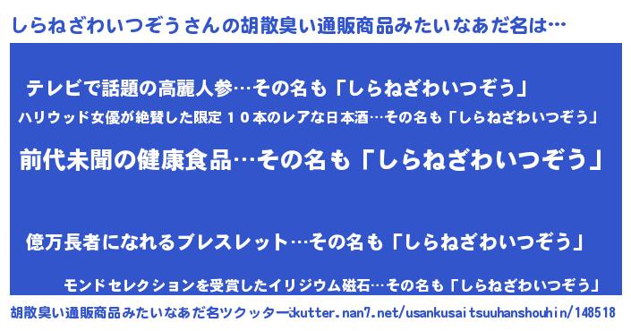 | 意味不明あだ名 | 『永久保存しらねざわいつぞう』 |