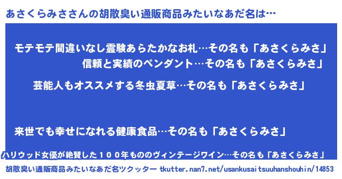 | 伝説のあだ名 | 『封印されしスナイパーあさくらみさ』 |