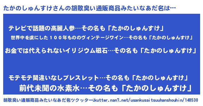 たかのしゅんすけさんの胡散臭い通販商品みたいなあだ名をツクッター!