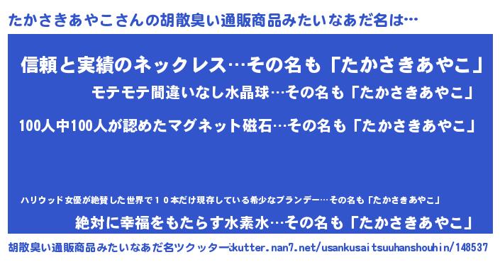| ヘコむあだ名 | 『たかお』『たかさきあやこ(小並感)』 |