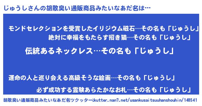 | 男性向けラノベタイトル風あだ名 | 『じゅうしの嫁は女の子じゃないと思った?』 |