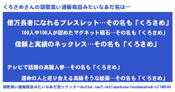 | 意味不明あだ名 | 『とにかく怪しいくろさめ』 |