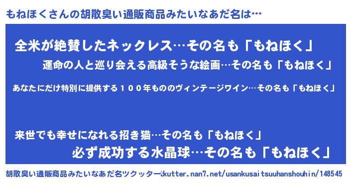 | ヘコむあだ名 | 『もね太郎』『もねっふぃ~』 |