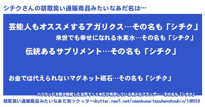| ヘコむあだ名 | 『シチを』『シチク(笑)』『シチもー』 |