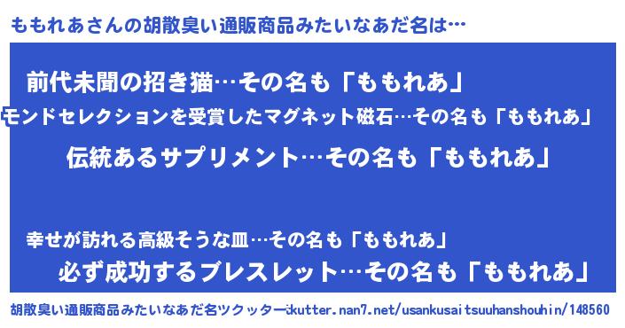 | 意味不明あだ名 | 『とにかく怪しいももれあ』 |