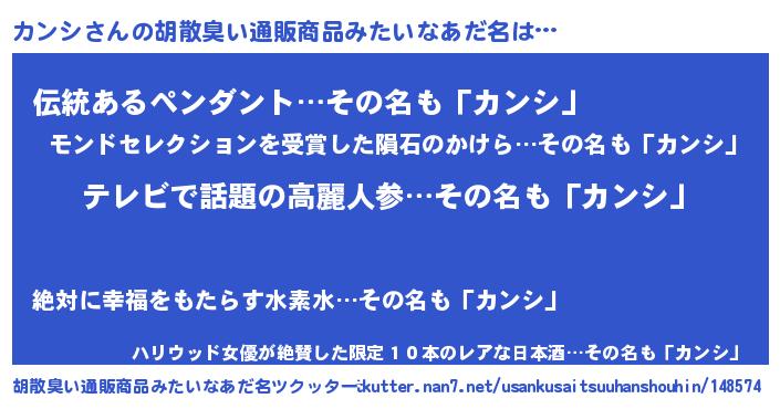 | ヘコむあだ名 | 『カン太郎』『カンシ(遠い目)』 |