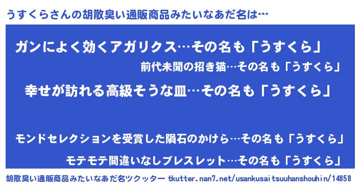 | 意味不明あだ名 | 『うすくらフォーエバー』『自称うすくら』 |