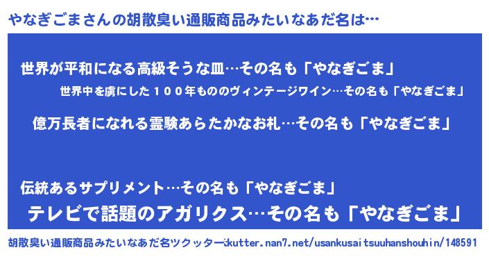 | 意味不明あだ名 | 『ペロリンやなぎごま』『自称やなぎごま』 |