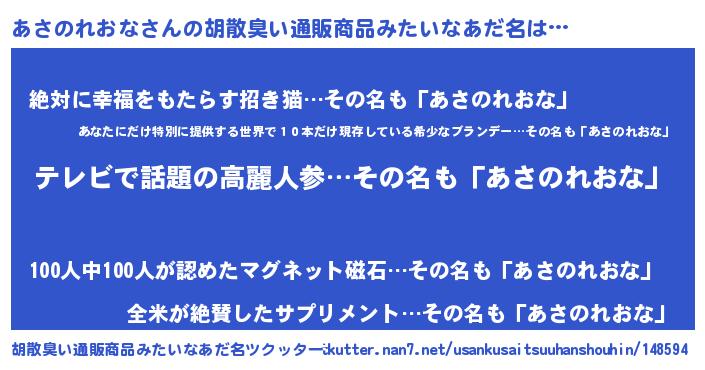 | 意味不明あだ名 | 『自称あさのれおな』 |