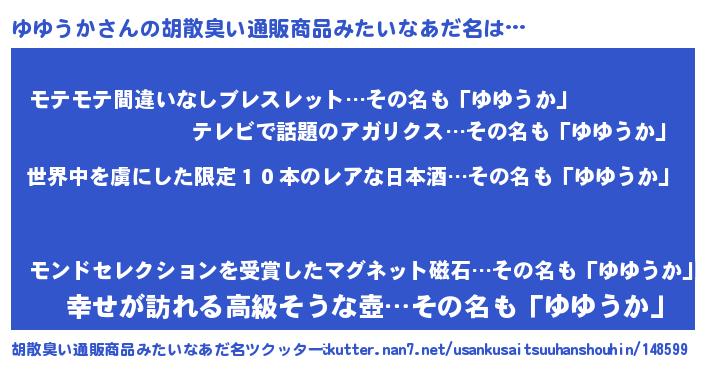 | 意味不明あだ名 | 『住所不定無職ゆゆうか(65歳)』 |
