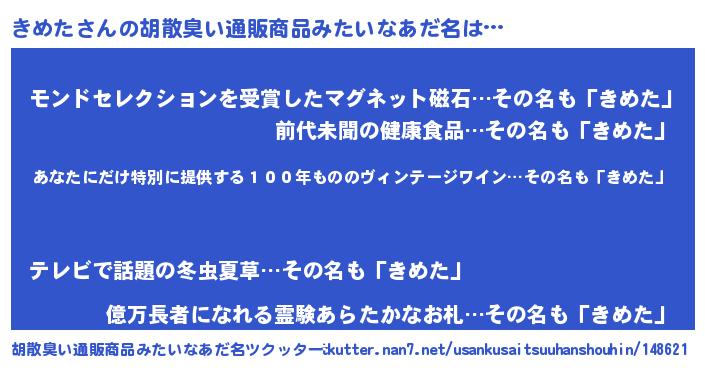 | ヒーロー風カッコイイあだ名 | 『仮面キメダー』『慈愛の使者きめた』 |