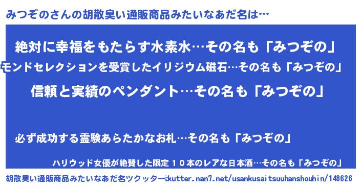 | ヘコむあだ名 | 『みつっちょ』『みつぞの(苦笑)』 |