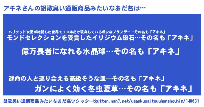 | 恥ずかしいあだ名 | 『プリティーアキネ』『アキネデラックス』 |